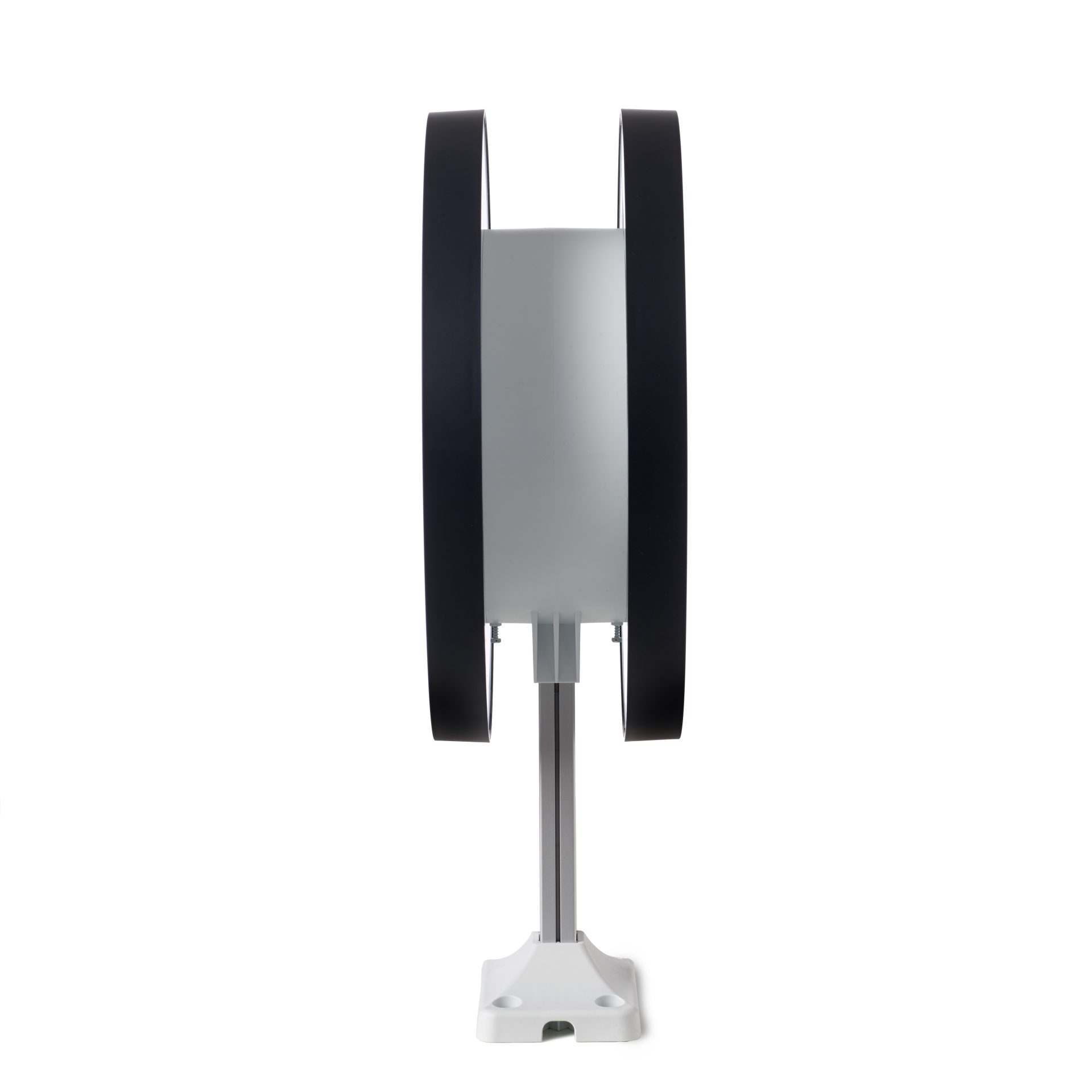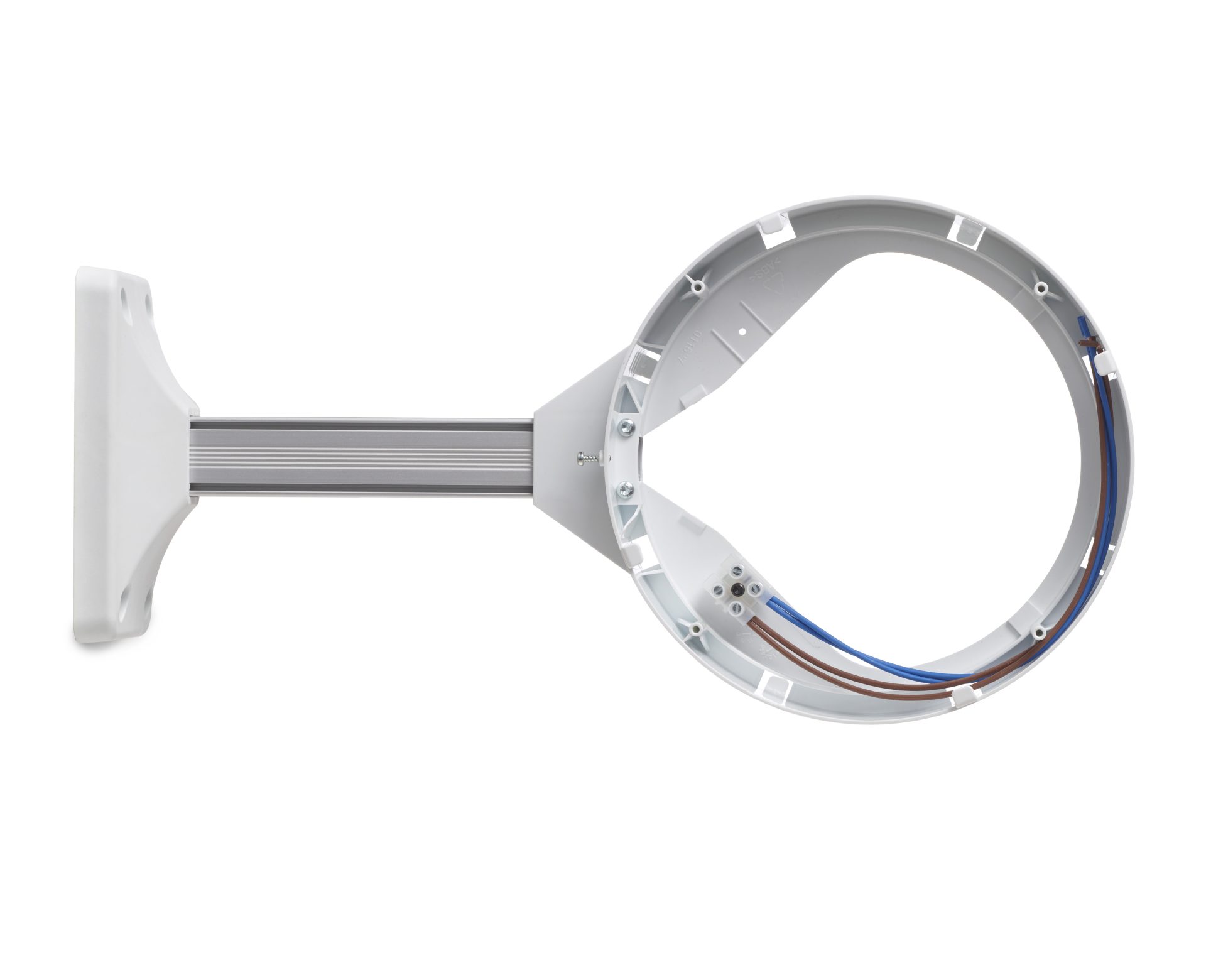 - Bracket and mounting plate in white with aluminum arm.