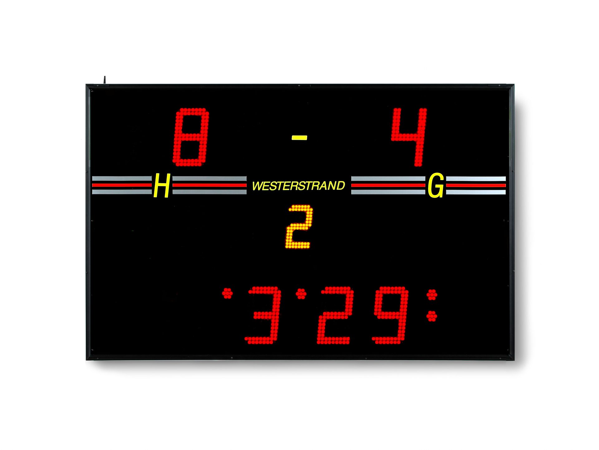 Scoreboard with integrated siren and LED digits in SMD technology.