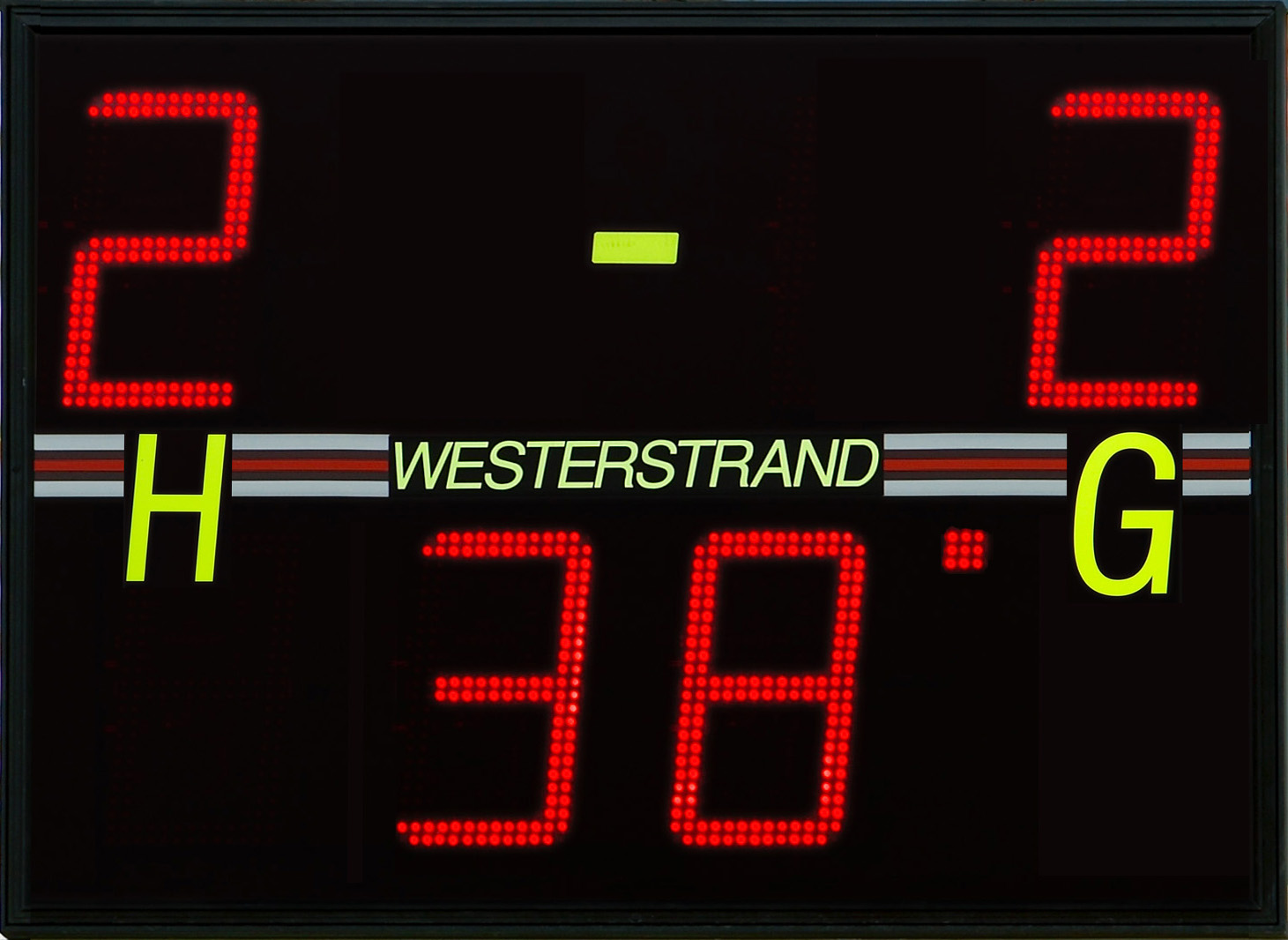Scoreboard with LED digits in SMD technology. Its design makes it suitable for e.g. soccer and bandy. The board is operated via a wireless remote unit.
